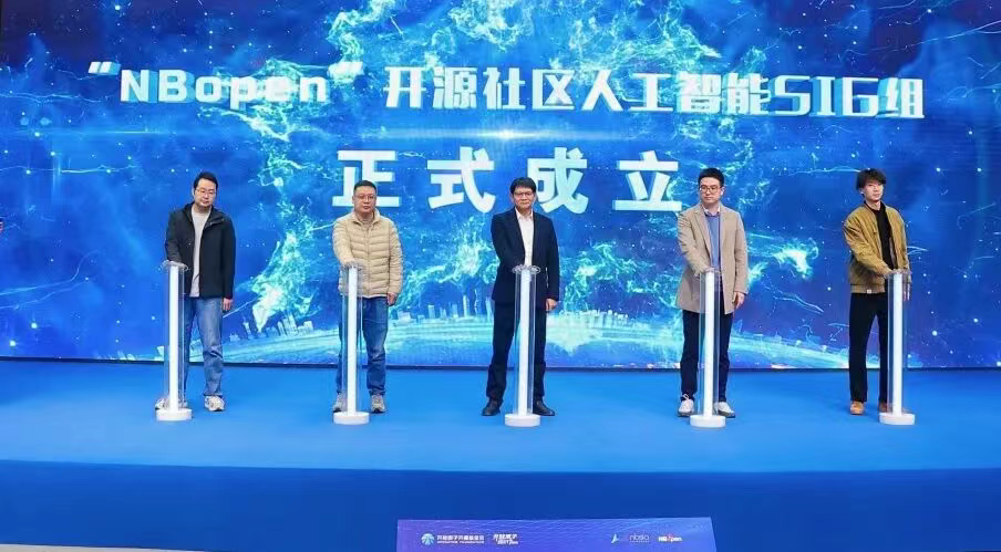 活动现场举行了**“NBopen”开源社区人工智能SIG组成立仪式**,标志着宁波本地开源生态在人工智能领域迈出关键一步,也为区域开源人才培养与技术创新搭建了新载体。